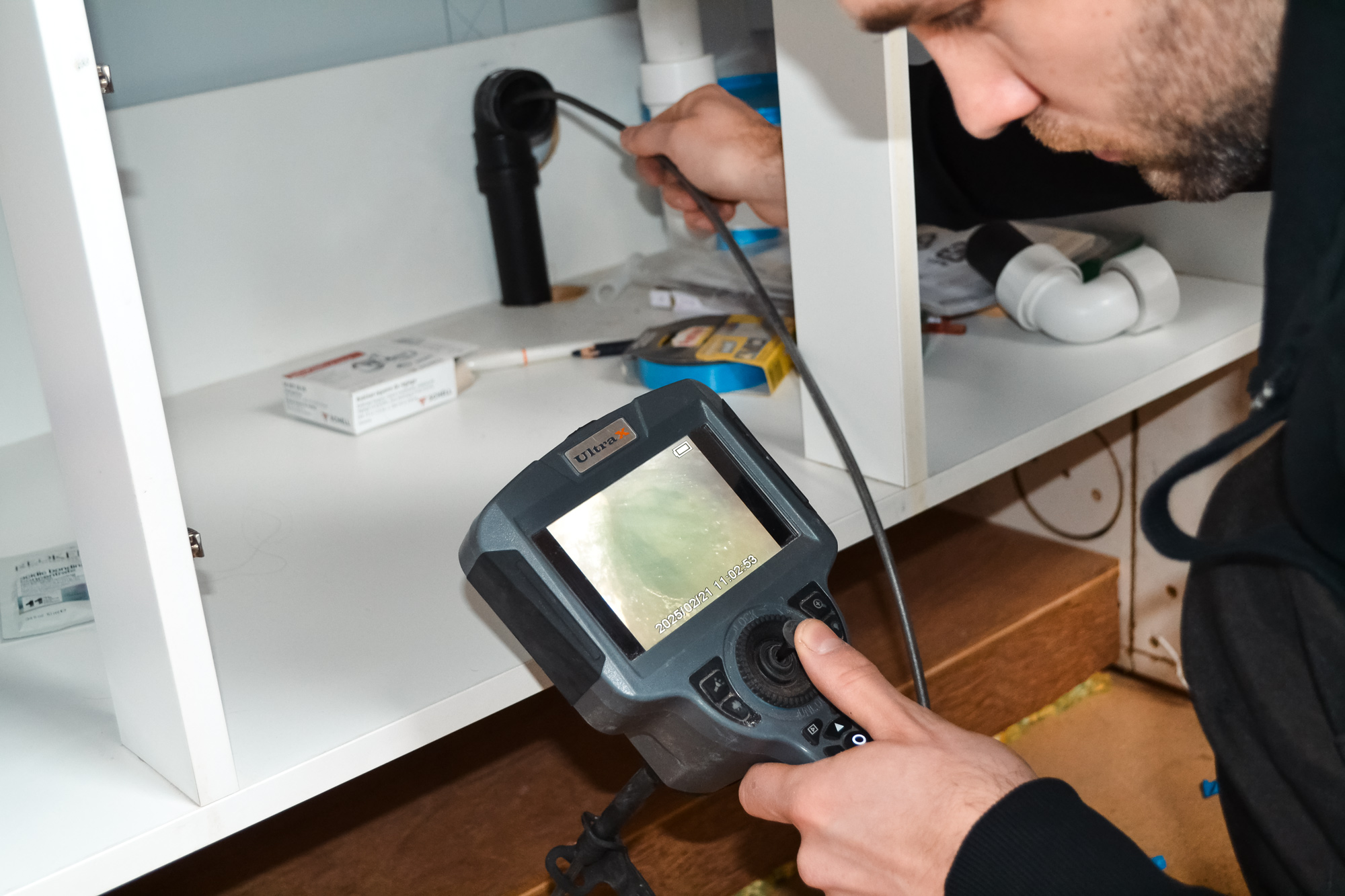 Soms zijn leidingen of structuren niet rechtstreeks bereikbaar. In dat geval gebruiken wij endoscopische camera’s om in kokers, valse plafonds of holle ruimtes te kijken om gericht schade op te sporen.