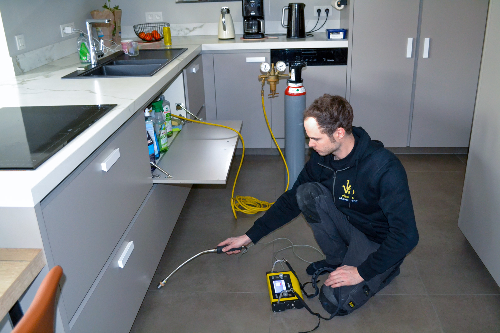 Met behulp van onder andere akoestische detectie, infraroodcamera’s en traceergastechnieken, lokaliseren we het lek.